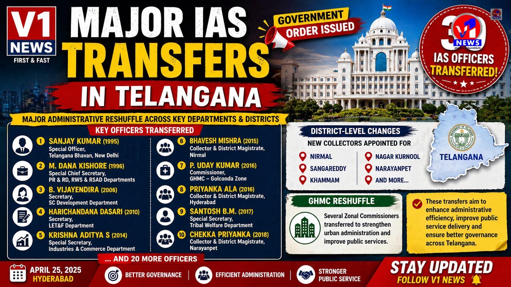 📰 తెలంగాణలో ఐఏఎస్ అధికారుల భారీ బదిలీలు 30 మంది అధికారుల నియామకాలపై ప్రభుత్వం ఉత్తర్వులు జారీ
