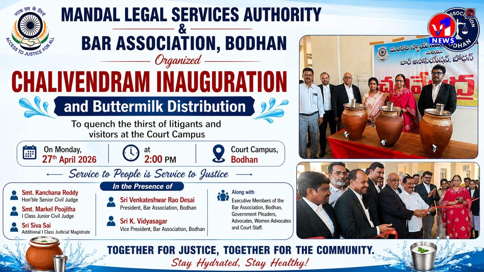 బోధన్ కోర్టు ప్రాంగణంలో చలివేంద్రం ప్రారంభం – మజ్జిగ పంపిణీ
