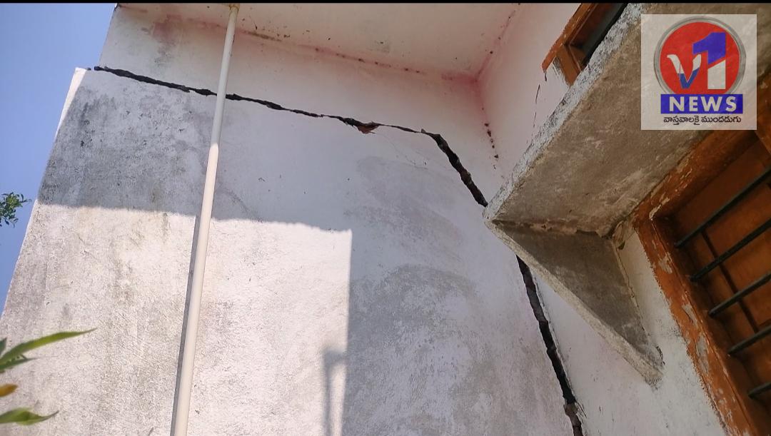 – పగుళ్ళతో దర్శనమిస్తున్న గ్రామపంచాయతీ భవనం