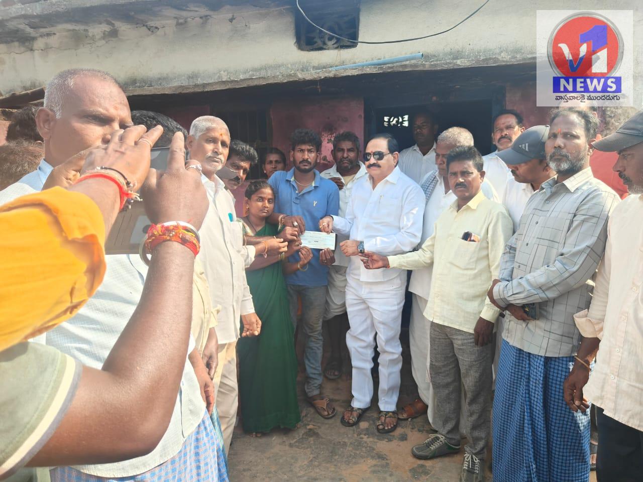 ముధోల్ నియోజక వర్గం భైంసా మండలం దేగాం గ్రామానికి చెందిన వడ్డే రాజు గారి ఇల్లు ప్రమాదవశాత్తు షాట్ సర్క్యూట్ తో ఇల్లు పూర్తిగా దగ్దం కావడం జరిగింది మరియు ఇంటి లోపల ఉన్న నిత్యావసర సరుకులు, ఇంటిలోని వస్తువులు బంగారం నగదు పూర్తిగా దగ్ధం అయ్యి వడ్డే రాజు గారి కుటుంబం రోడ్డున పడటం తో