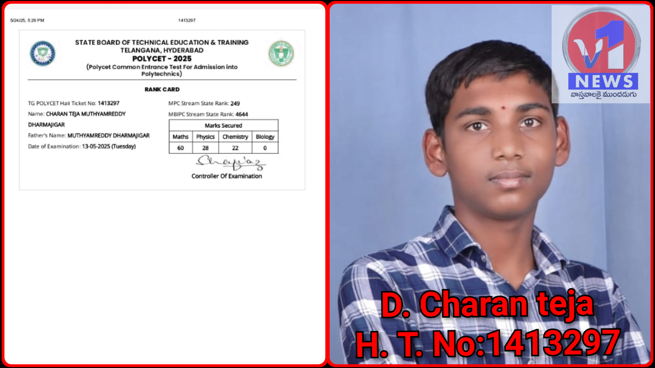 . POLYCET-2025లో చరణ్ తేజా ప్రతిభా ప్రదర్శన – రాష్ట్ర స్థాయి రికార్డు..