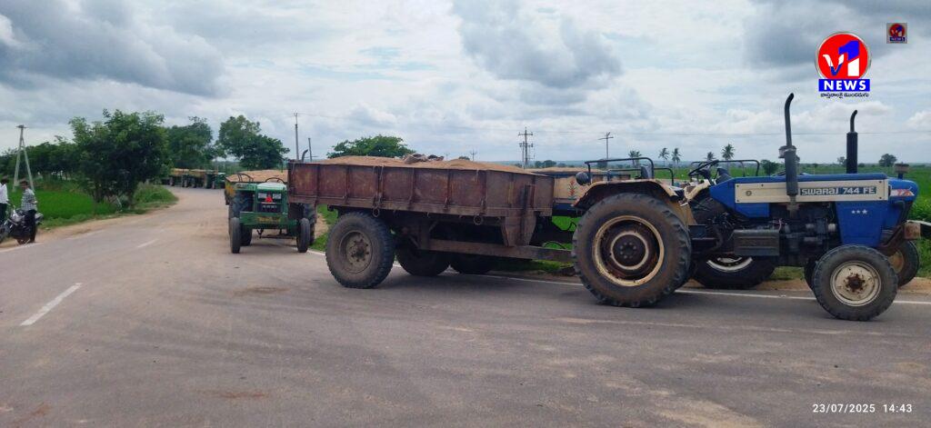 ఉపాధి లేక ఆర్థిక ఇబ్బందుల్లో ట్రాక్టర్ యజమానులు – సాలురలో నిరసన . ఇసుక రవాణాపై మండలాల మధ్య వివాదం – సాలురలో ట్రాఫిక్ జాం సాలురా చౌరస్తా వద్ద ట్రాక్టర్లతో నిరసన – అధికారుల జోక్యం . ఇసుక రవాణా అనుమతుల్లో అసమానతలు – తహసిల్దార్ హామీతో నిరసన విరమణ
