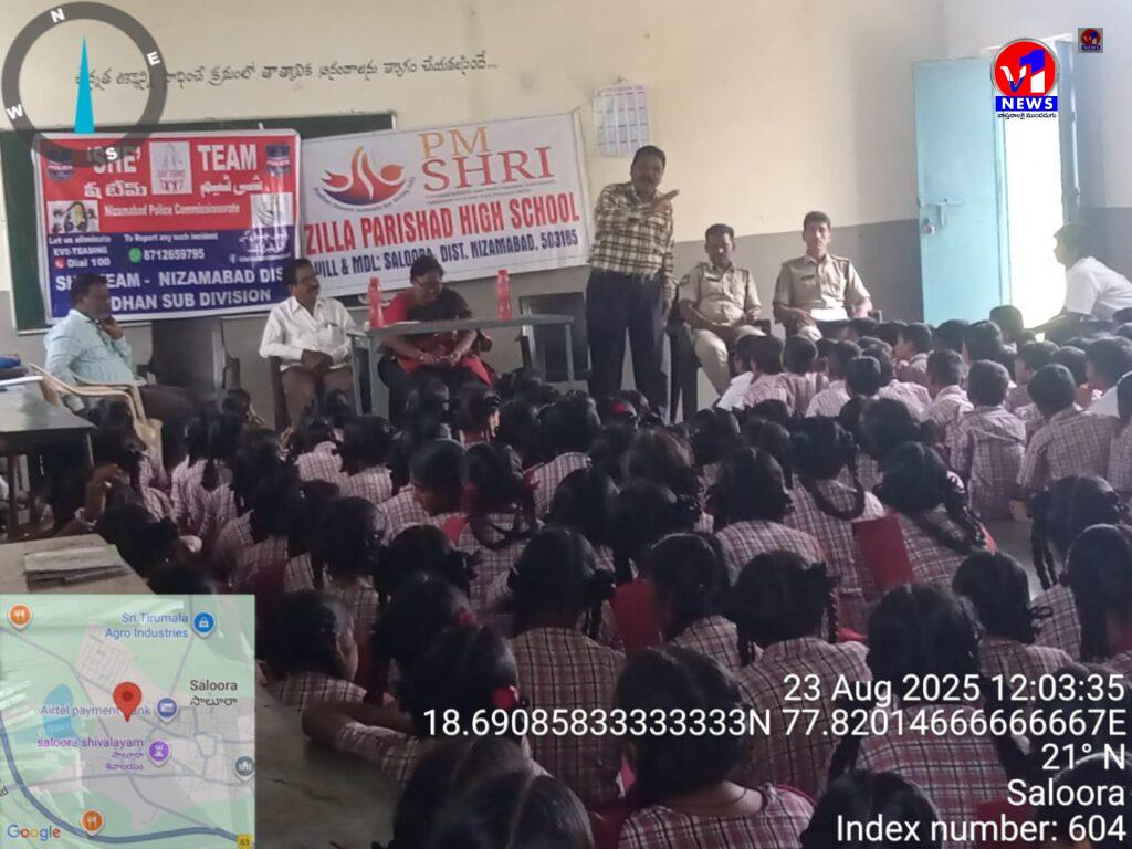 (బోధన్, ఆగష్టు 23 (వి1 న్యూస్) : డిజిటల్ యుగంలో సాంకేతికత ఉపయోగించాల్సిందే, కానీ జాగ్రత్తలు పాటించడమూ అంతే అవసరం. విద్యార్థిగా మీరు మీ భవిష్యత్తును కాపాడుకోవాలంటే, ఇలాంటి మోసాలను గుర్తించి, సరైన చర్యలు తీసుకోవాలని షీ టీమ్ ఏ ఎసై ఆశన్న అన్నారు. సాలూర మండల కేంద్రంలోని ప్రభుత్వ పాఠశాలలో షీ టీమ్, విద్యాశాఖ సంయుక్త ఆధ్వర్యంలో శనివారం సైబర్ నేరాలపై విద్యార్థులకు అవగాహన కలిపించారు. ఈ సందర్భంగా అయన మాట్లాడుతూ .. అజ్ఞాతుల మెసేజ్లు లేదా ఫ్రెండ్ రిక్వెస్ట్లు అంగీకరించవద్దన్నారు.మోసపూరిత అకౌంట్లు ఆకర్షణీయమైన ప్రొఫైల్ ఫోటోలు ఉపయోగించి మిమ్మల్ని మోసం చేసే అవకాశం ఉందని, వ్యక్తిగత ఫోటోలు లేదా వీడియోలు షేర్ చేయవద్దని వెల్లడించారు. వేధింపులు ఎదురైతే భయపడకుండా పోలీసులను సంప్రదించాలని సూచించారు. ఈ కార్యక్రమంలో మండల వైద్యాధికారిణి రాజీ మంజూష, ఉపాధ్యాయులు పురానే విజయ్ కుమార్, గంధం సాయిలు, దండు రాజ్ కుమార్, విఠల్ కాంబ్లే, స్వామి, లక్ష్మి, విజయలక్ష్మి, అరుణ్ కుమార్, సంతోష్ యాదవ్ తదితరులు పాల్గొన్నారు.