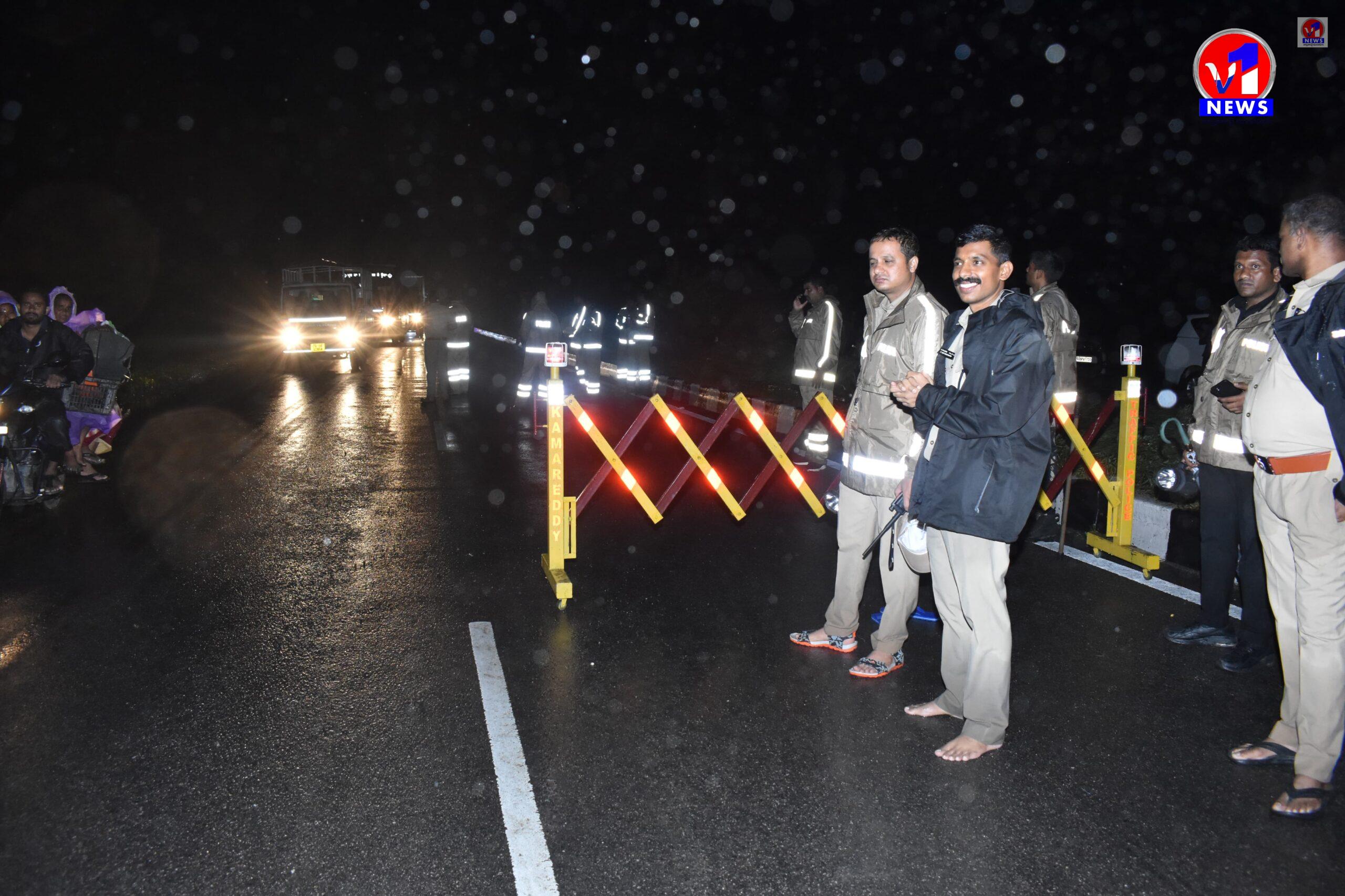 కామారెడ్డి జిల్లా జంగంపల్లి గ్రామ సమీపంలో జాతీయ రహదారి 44 పై వరద నీరు ఉధృతంగా ప్రవహించడంతో రాకపోకలు పూర్తిగా నిలిచిపోయాయి. పరిస్థితిని అదుపులోకి తీసుకురావడానికి పోలీసులు యుద్ధ ప్రాతిపదికన చర్యలు చేపట్టారు. తక్కువ సమయంలోనే రహదారిపై నిలిచిపోయిన నీటిని తగ్గించి, రాకపోకలను పునరుద్ధరించారు.