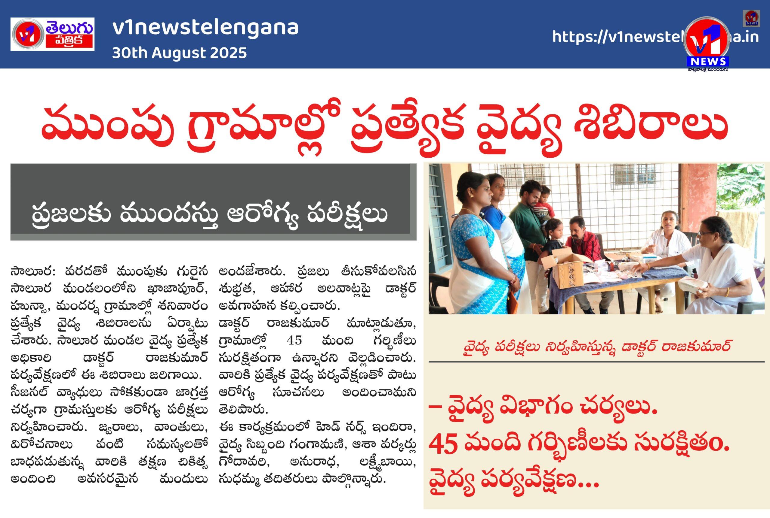 డాక్టర్ రాజకుమార్ మాట్లాడుతూ, గ్రామాల్లో 45 మంది గర్భిణీలు సురక్షితంగా ఉన్నారని వెల్లడించారు. వారికి ప్రత్యేక వైద్య పర్యవేక్షణతో పాటు ఆరోగ్య సూచనలు అందించామని తెలిపారు.