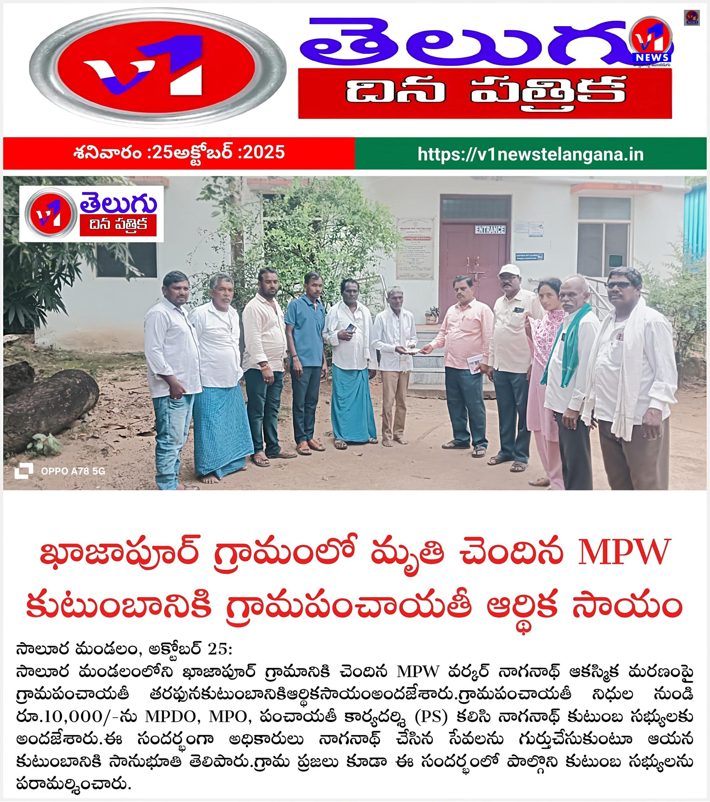 ఖాజాపూర్ గ్రామంలో మృతి చెందిన MPW కుటుంబానికి గ్రామపంచాయతీ ఆర్థిక సాయం