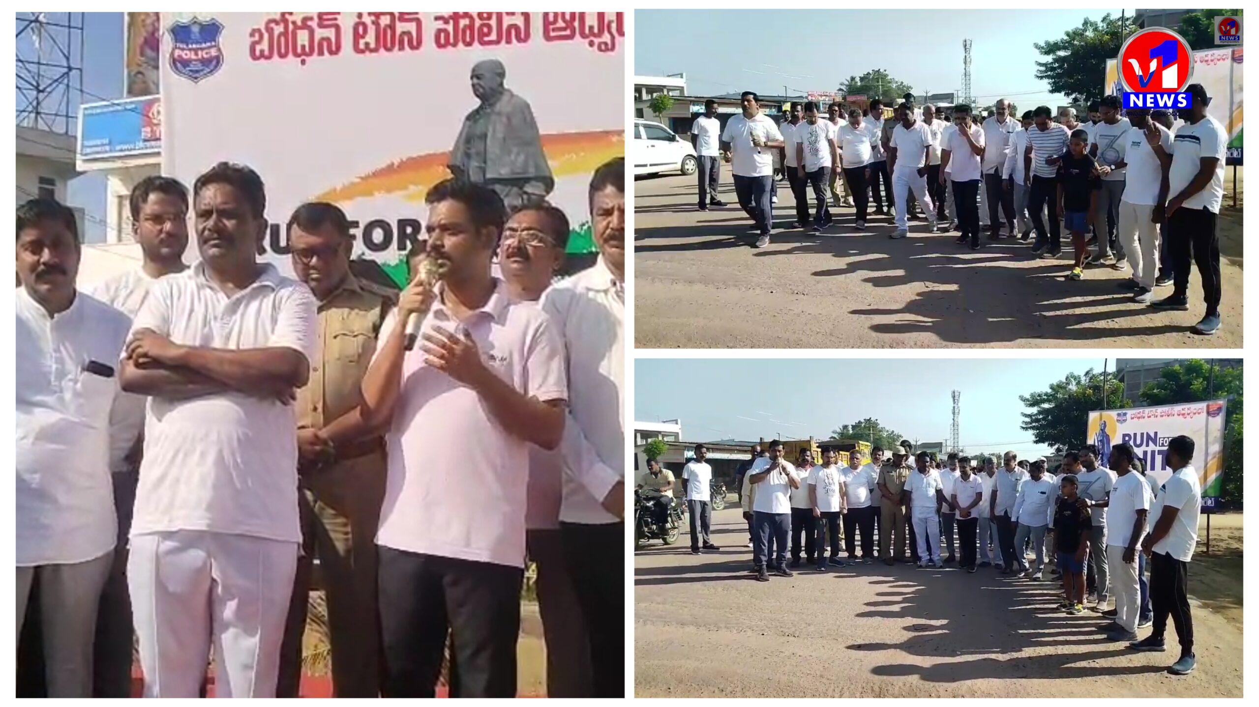 బోధన్ సబ్ కలెక్టర్ ఆధ్వర్యంలో రన్ ఫర్ యూనిటీ కార్యక్రమం నిర్వహణ.