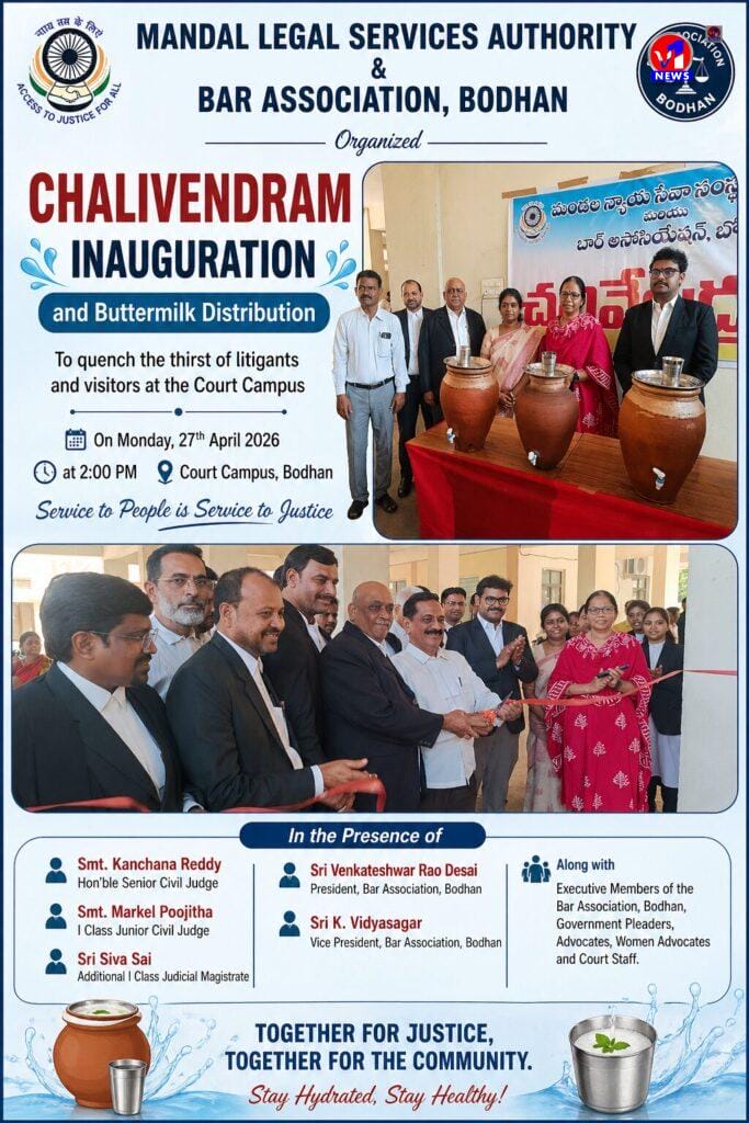 బోధన్ కోర్టు ప్రాంగణంలో చలివేంద్రం ప్రారంభం – మజ్జిగ పంపిణీ