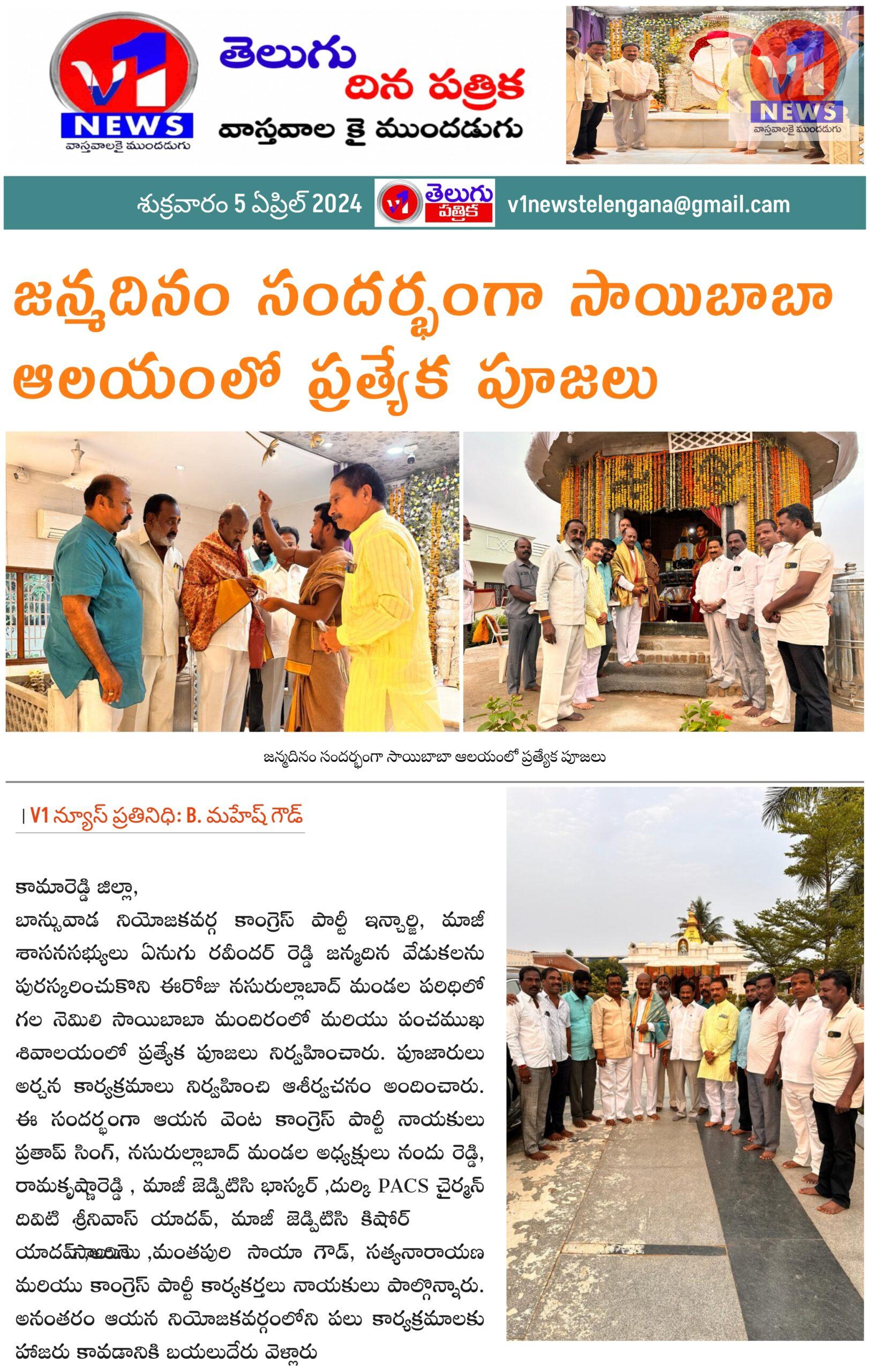 జన్మదినం సందర్భంగా సాయిబాబా ఆలయంలో ప్రత్యేక పూజలు