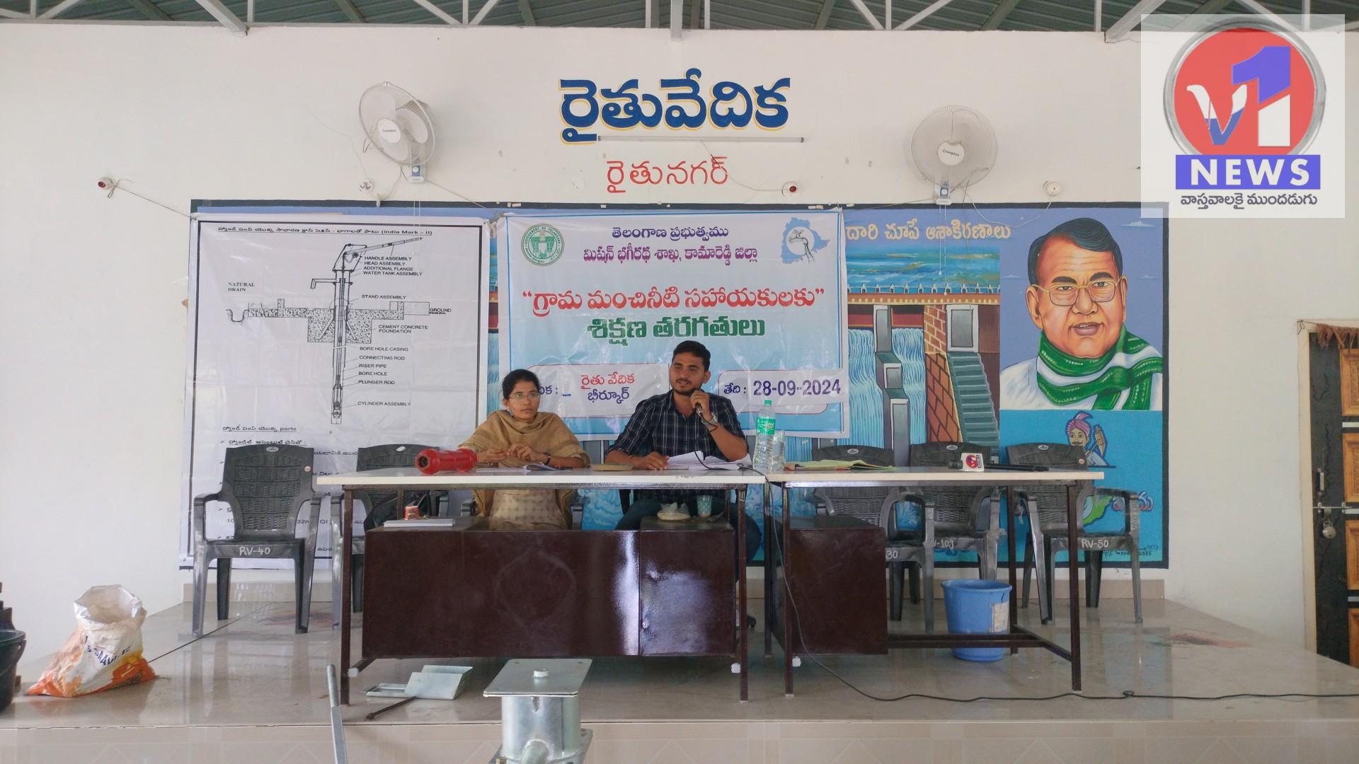 కామారెడ్డి జిల్లా: బాన్సువాడ మండలంలోని రైతు నగర్ గ్రామంలో గల రైతు వేదిక లో శనివారం రోజు మిషన్ భగీరథ శాఖ డి ఈ వెంకటేష్ గౌడ్ మరియు బీర్కూర్ మండల ఏఈఈ జగదీష్, నసురుల్లాబాద్ మండల ఏఈఈ అశ్విని ల ఆధ్వర్యంలో ఉభయ మండలాలలోని గ్రామాల నుండి గ్రామానికి ఒక్క నీటి సహాయకుని చొప్పున అన్ని గ్రామాల నుండి సేకరించి నాలుగు రోజులపాటు శిక్షణ తరగతులను నిర్వహిస్తున్నారు. అందులో భాగంగా శనివారం రోజు చేతిపంపు పై శిక్షణ తరగతులు నిర్వహించారు. ఈ సందర్భంగా శిక్షకులు సాయిలు మరియు హైమద్ చేతిపంపు లో ఉండే భాగాల గురించి.. అదేవిధంగా మరమ్మత్తు ఏర్పడినప్పుడు అందులో బిగించే సామాగ్రి మరియు దాని విధానం గురించి క్లుప్తంగా వివరించారు. ఈ క్రమంలో వారు మంచినీటి సహాయకులు అడిగే సందేహాలకు సమాధానం ఇస్తూ చక్కగా వివరించారు. ఈ సందర్భంగా మిషన్ భగీరథ శాఖ బీర్కూర్ మండల ఏఈఈ జగదీష్ మాట్లాడుతూ గ్రామాలలో ప్రజలకు మంచినీటి సౌకర్యం కల్పించడంలో కలిగే అంతరాయాలను అధిగమించడానికి మంచినీటి సహాయకులకు శిక్షణ తరగతులు నిర్వహించి తద్వారా వారిలో నైపుణ్యాభివృద్ధిని పెంపొందిస్తున్నామని తెలిపారు. కేంద్ర ప్రభుత్వం “నల్ జల్ మిత్ర” ఆదేశాల ప్రకారం రాష్ట్ర ప్రభుత్వాలు “మంచినీటి సహాయకులకు శిక్షణ తరగతులు” దేశవ్యాప్తంగా నిర్వహిస్తున్నారని తెలిపారు. గ్రామాలలో నీటి సరఫరా వివిధ కారణాలవల్ల అంతరాయం కలిగినప్పుడు వాటిని ఏ విధంగా పరిష్కరించాలని విషయంపై మంచినీటి నాయకులకు శిక్షణలో మెలకువలు నేర్పుతున్నామని అన్నారు. స్థానికంగా ఉండే సహాయకులు చిన్నచిన్న మరమ్మత్తులను నిర్వహించి సత్వర పరిష్కారం చూపడం ద్వారా ప్రజలకు నీటి సరఫరా అందించడంలో జాప్యం జరగకుండా ఉంటుందని అన్నారు. మంచినీటి సహాయకులు శిక్షణా తరగతులలో అనుభవం గల శిక్షకులు తెలిపిన విషయాలను శ్రద్దగా విని నేర్చుకోవాలని కోరారు. తద్వారా నీటి ఎద్దడి సమస్యలు తలెత్తినప్పుడు త్వరితగతిన పరిష్కారాలు చేసుకునే విధంగా ఉపయోగపడుతుందని తెలిపారు. ఈ కార్యక్రమంలో వివిధ గ్రామాల నుండి మంచినీటి సహాయకులు తదితరులు పాల్గొన్నారు.