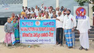 ……. ఈ సందర్భంగా ఏ షాల. గంగాధర్ వికలాంగుల హక్కుల జాతీయ వేదిక NPRD. రాష్ట్ర సహ య కార్యదర్శి జిల్లా ప్రధాన కార్యదర్శి మాట్లాడుతూ రాష్ట్ర ప్రభుత్వం ఎన్నికల్లో ఇచ్చిన హామీ ప్రకారం ప్రతి వికలాంగుడికి నెలకు 6000 పెన్షన్ ఇవ్వాలి రాష్ట్రవ్యాప్తంగా కొత్తగా దరఖాస్తులు పెట్టిన 28 లక్షల మందికి కొత్త పెన్షన్లు ఇవ్వాలి అందరికీ అంతోదయ కార్డులు ఇవ్వాలి డబల్ బెడ్ రూమ్ ఇండ్లను ఇవ్వాలి ఇంటి స్థలాలను ఇవ్వాలి కొత్త రేషన్ కార్డులు ఇవ్వాలి సదరన్ క్యాంపులు ఎక్కడికక్కడ నిర్వహించి సర్టిఫికెట్లు ఇవ్వాలి బ్యాక్ లాక్ పోస్టులను భర్తీ చేయాలి ప్రత్యేకంగా బ్యాంకుల ద్వారా రుణాలు ఇవ్వాలి అర్హులైన వారికి స్కూటీలు ఇవ్వాలి మూడుపైల సైకిల్ బండిలో ఇవ్వాలి వీటితో వీటితోపాటు కేంద్ర ప్రభుత్వం ప్రస్తుతం ప్రతి వికలాంగుడికి 300 పెన్షన్ ఇస్తుంది కానీ దానిని నెలకు 3000 పెన్షన్ పెంచాలి రెండు ప్రభుత్వాలు కలిపి నెలకు పదివేల పెన్షన్ ఇవ్వాలి తదితర డిమాండ్లన్నీ పరిష్కారం చేయాలని కేంద్ర రాష్ట్ర ప్రభుత్వాన్ని ఏషాల.గంగాధర్. జిల్లా ప్రధాన కార్యదర్శి రాష్ట్ర సహాయ కార్యదర్శి. డిమాండ్ చేశారు