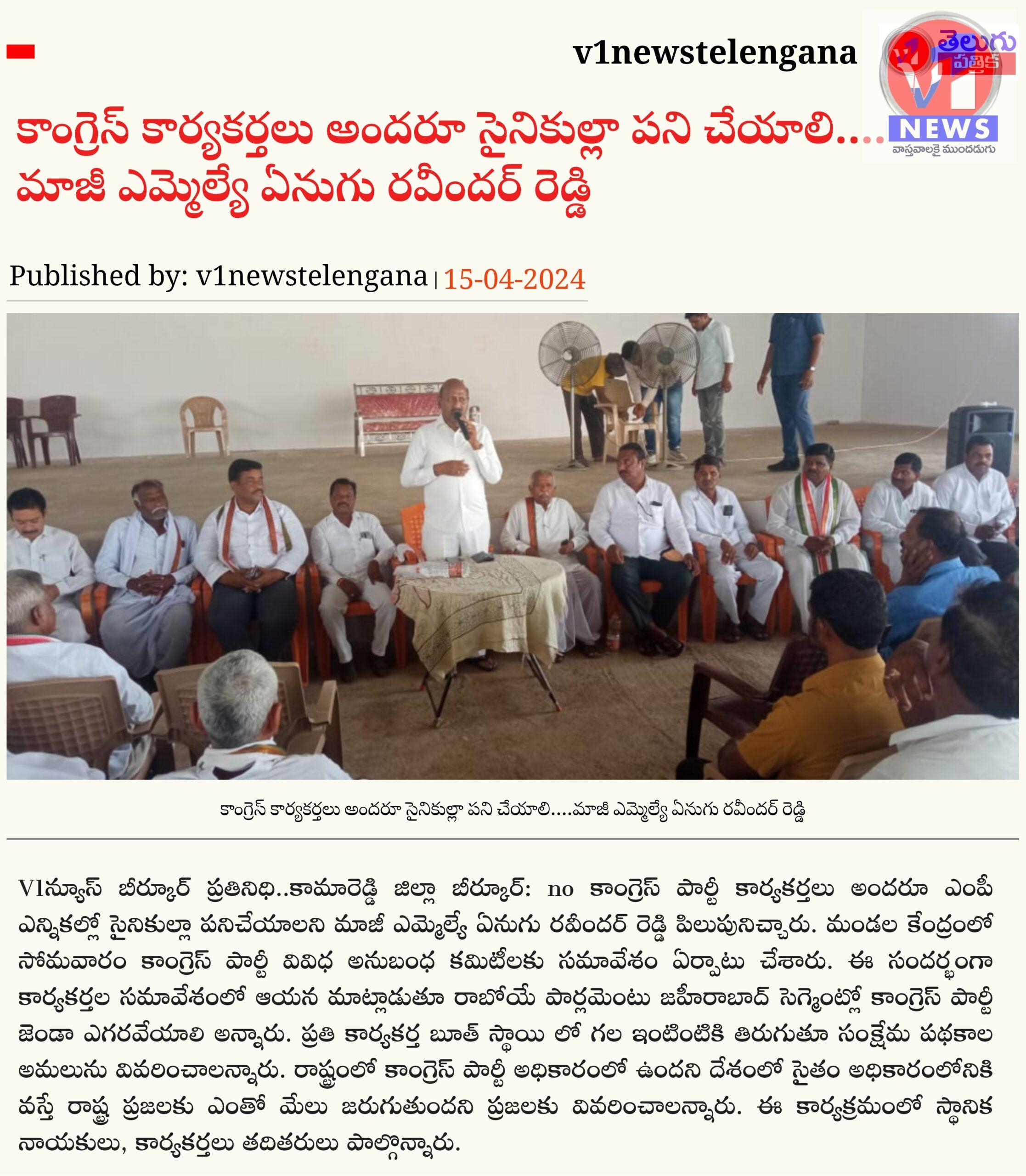 కాంగ్రెస్ కార్యకర్తలు అందరూ సైనికుల్లా పని చేయాలి…. మాజీ ఎమ్మెల్యే ఏనుగు రవీందర్ రెడ్డి April 15, 2024 No Comments