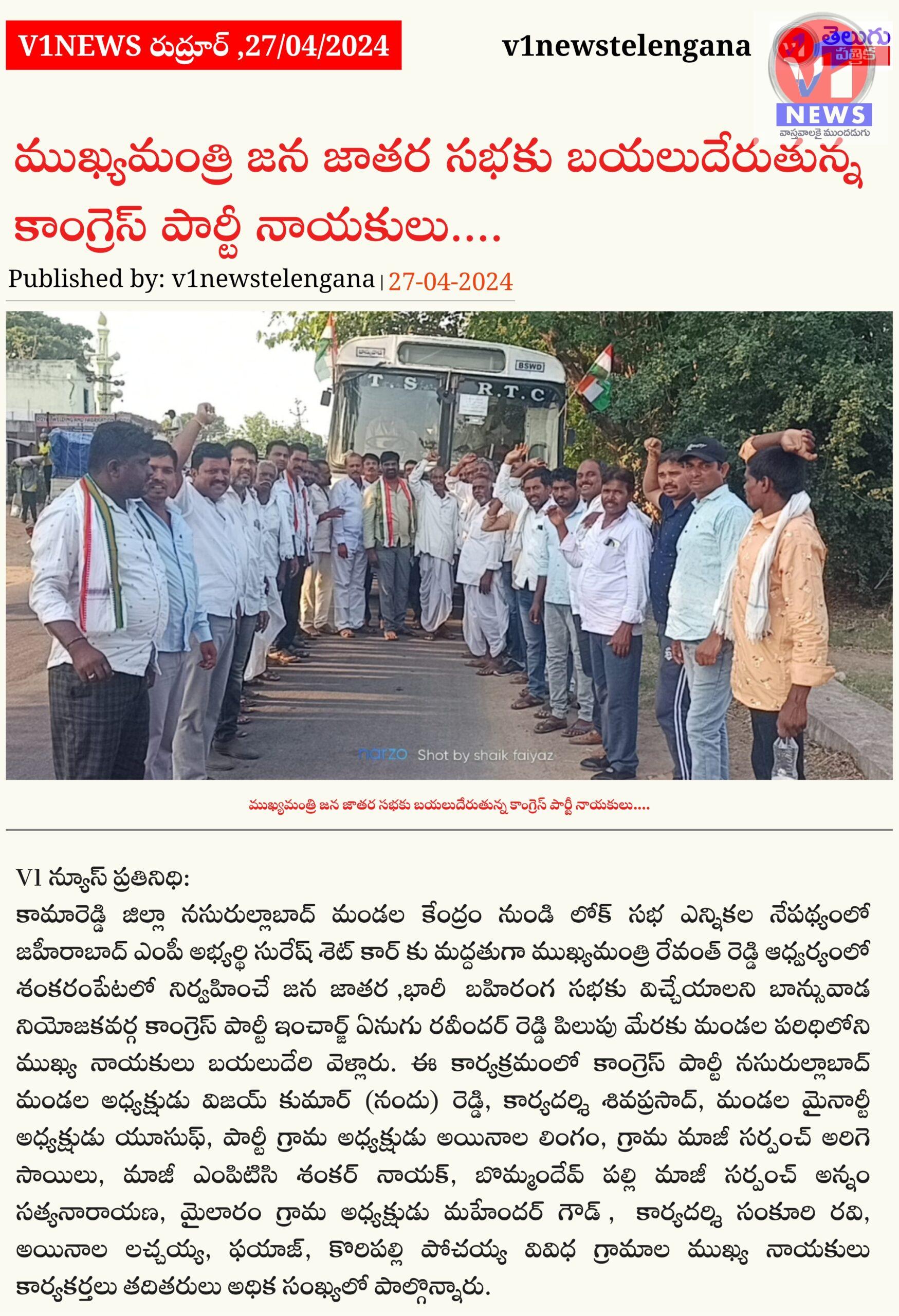 ముఖ్యమంత్రి జనజాతర సభకు బయలుదేరుతున్న కాంగ్రెస్ పార్టీ నాయకులు….