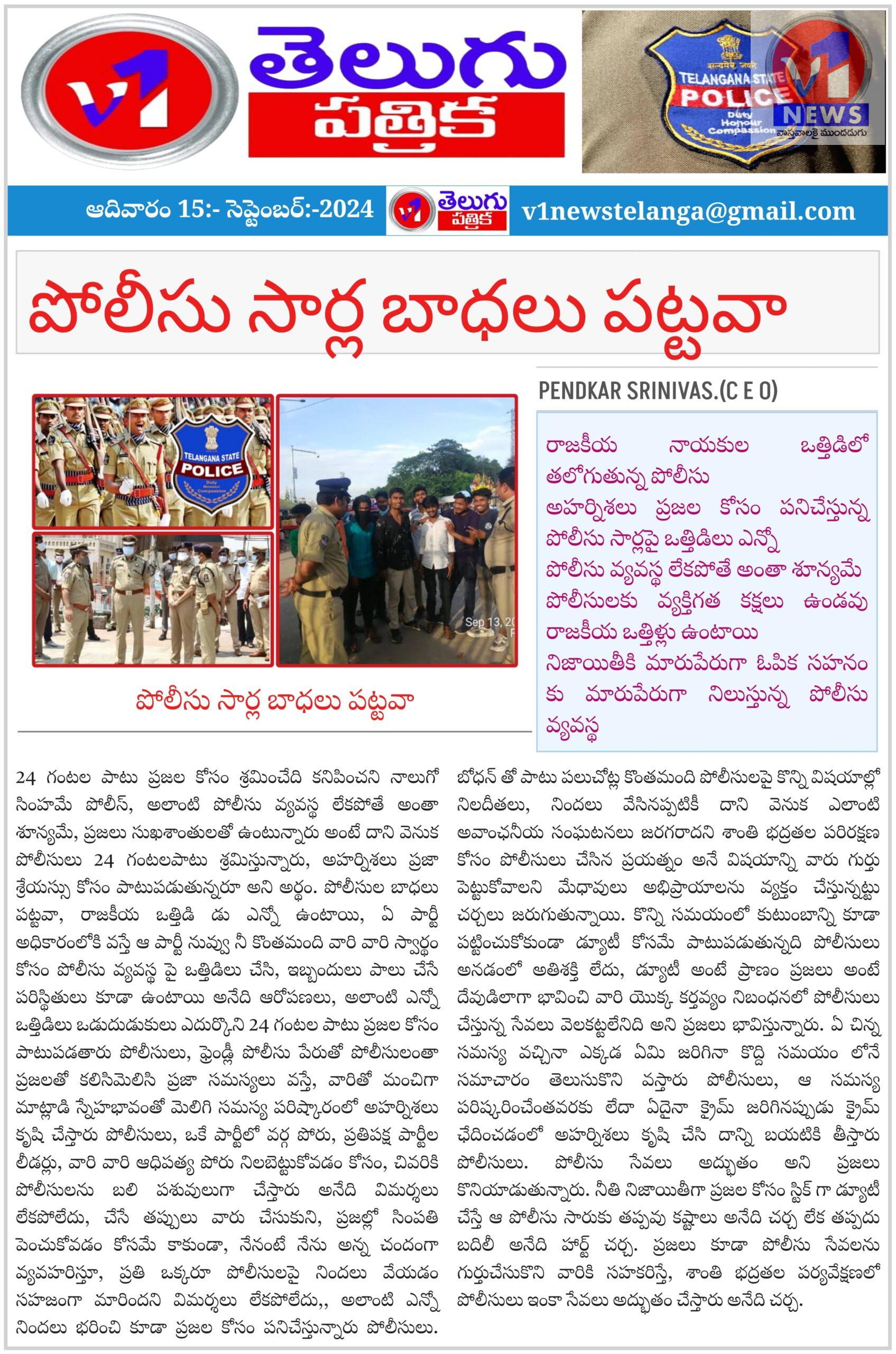 పోలీసు సార్ల బాధలు పట్టవా రాజకీయ నాయకుల ఒత్తిడిలో తలోగుతున్న పోలీసు అహర్నిశలు ప్రజల కోసం పనిచేస్తున్న పోలీసు సార్లపై ఒత్తిడిలు ఎన్నో పోలీసు వ్యవస్థ లేకపోతే అంతా శూన్యమే పోలీసులకు వ్యక్తిగత కక్షలు ఉండవు రాజకీయ ఒత్తిళ్లు ఉంటాయి నిజాయితీకి మారుపేరుగా ఓపిక సహనం కు మారుపేరుగా నిలుస్తున్న పోలీసు వ్యవస్థ September 15, 2024 No Comments