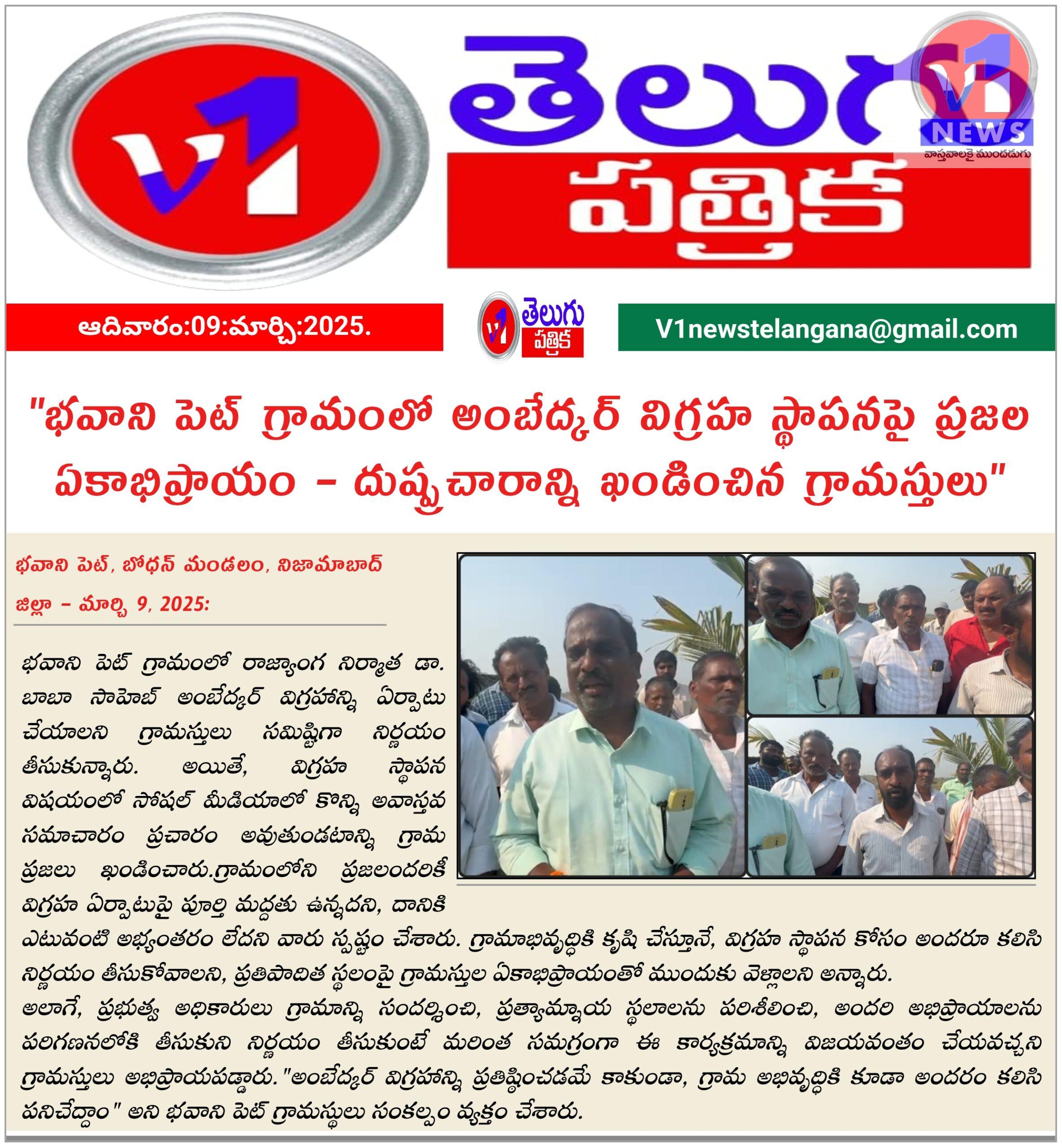 భవాని పెట్ గ్రామంలో అంబేద్కర్ విగ్రహ స్థాపనపై ప్రజల ఏకాభిప్రాయం – దుష్ప్రచారాన్ని ఖండించిన గ్రామస్తులు” March 9, 2025 No Comments