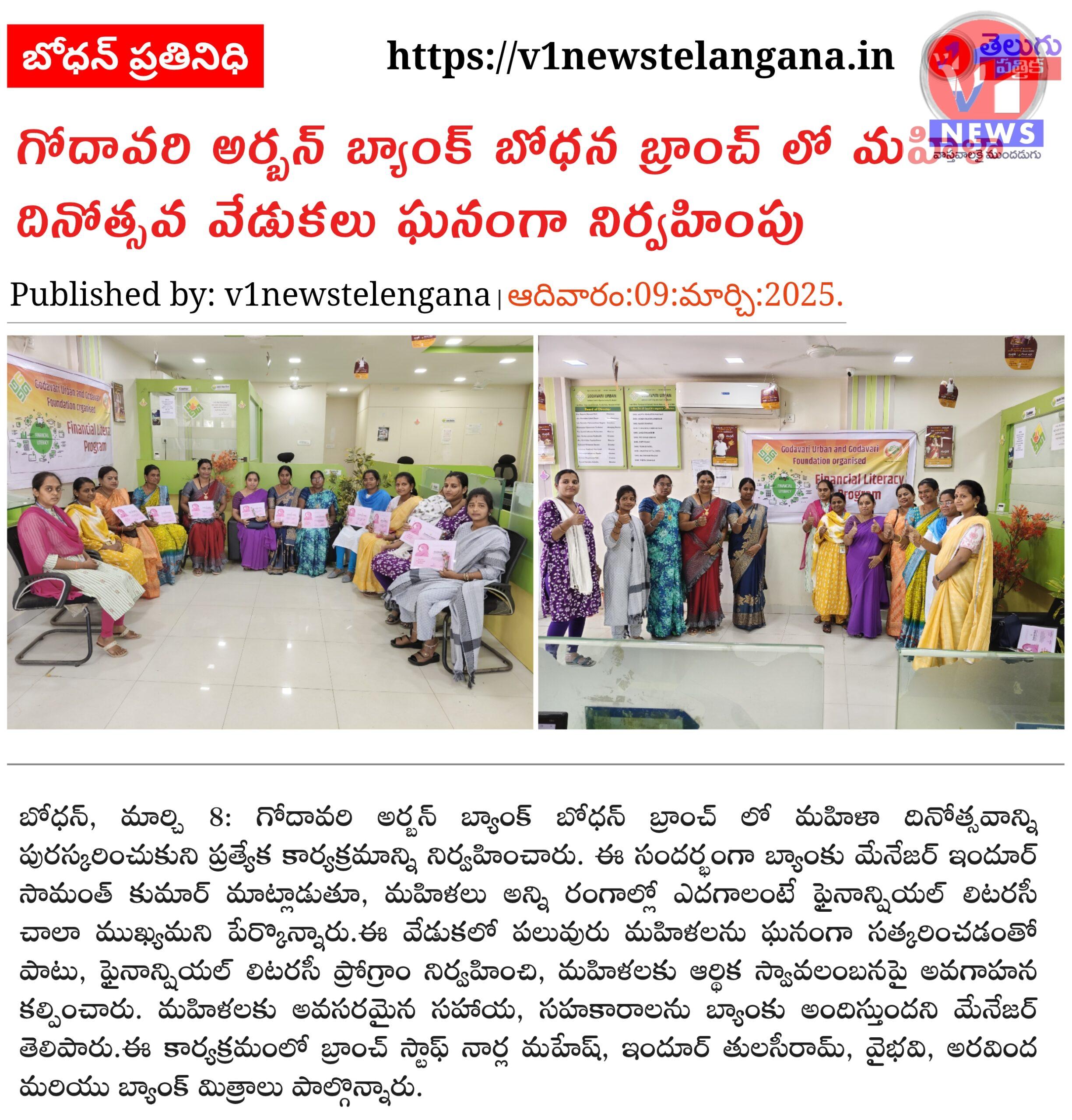 గోదావరి అర్బన్ బ్యాంక్ బోధన బ్రాంచ్ లో మహిళా దినోత్సవ వేడుకలు ఘనంగా నిర్వహింపు March 9, 2025 No Comments