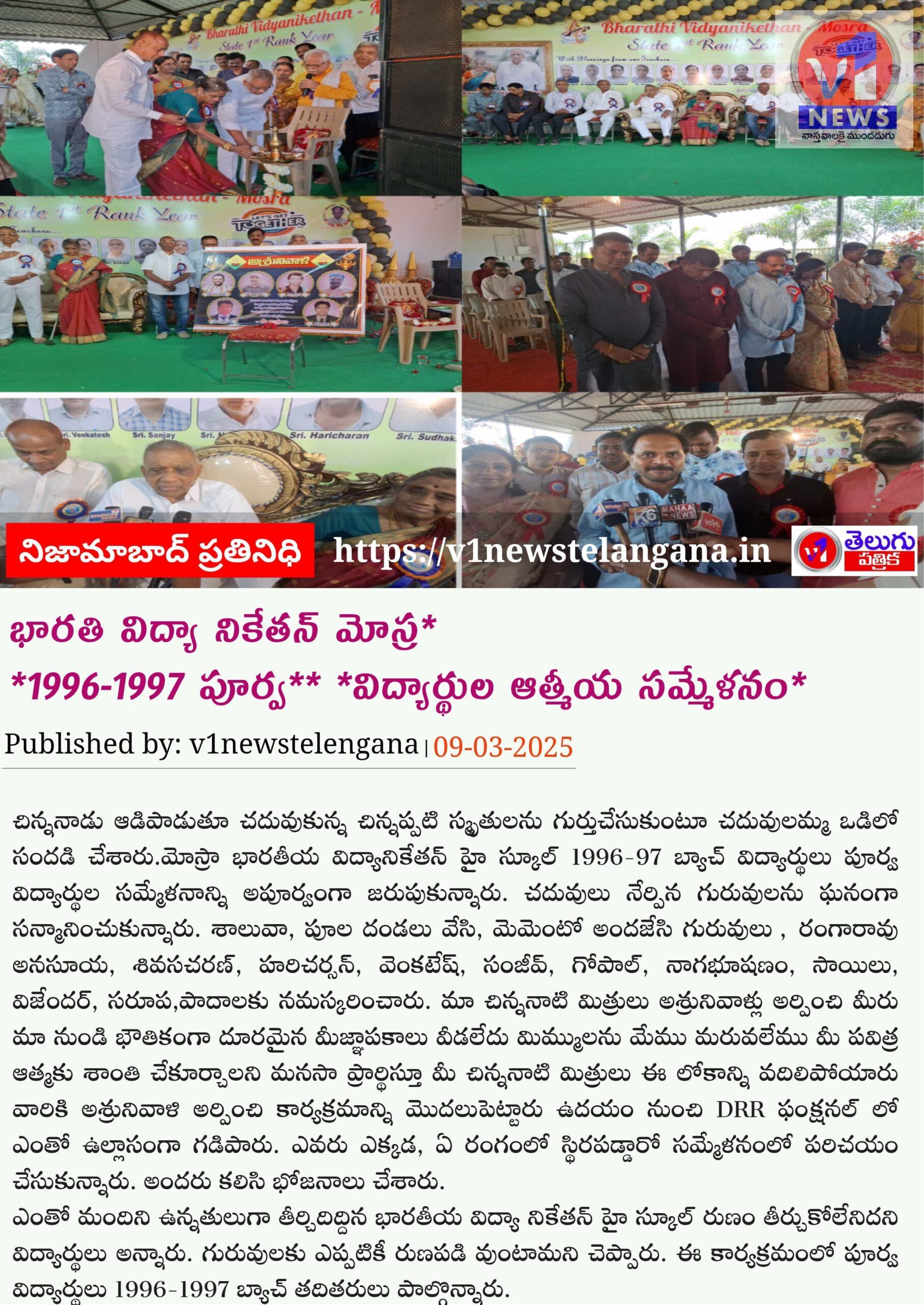*భారతి విద్యా నికేతన్ మోస్ర* *1996-1997 పూర్వ** *విద్యార్థుల అపూర్వ సమ్మేళనం* March 9, 2025 No Comments