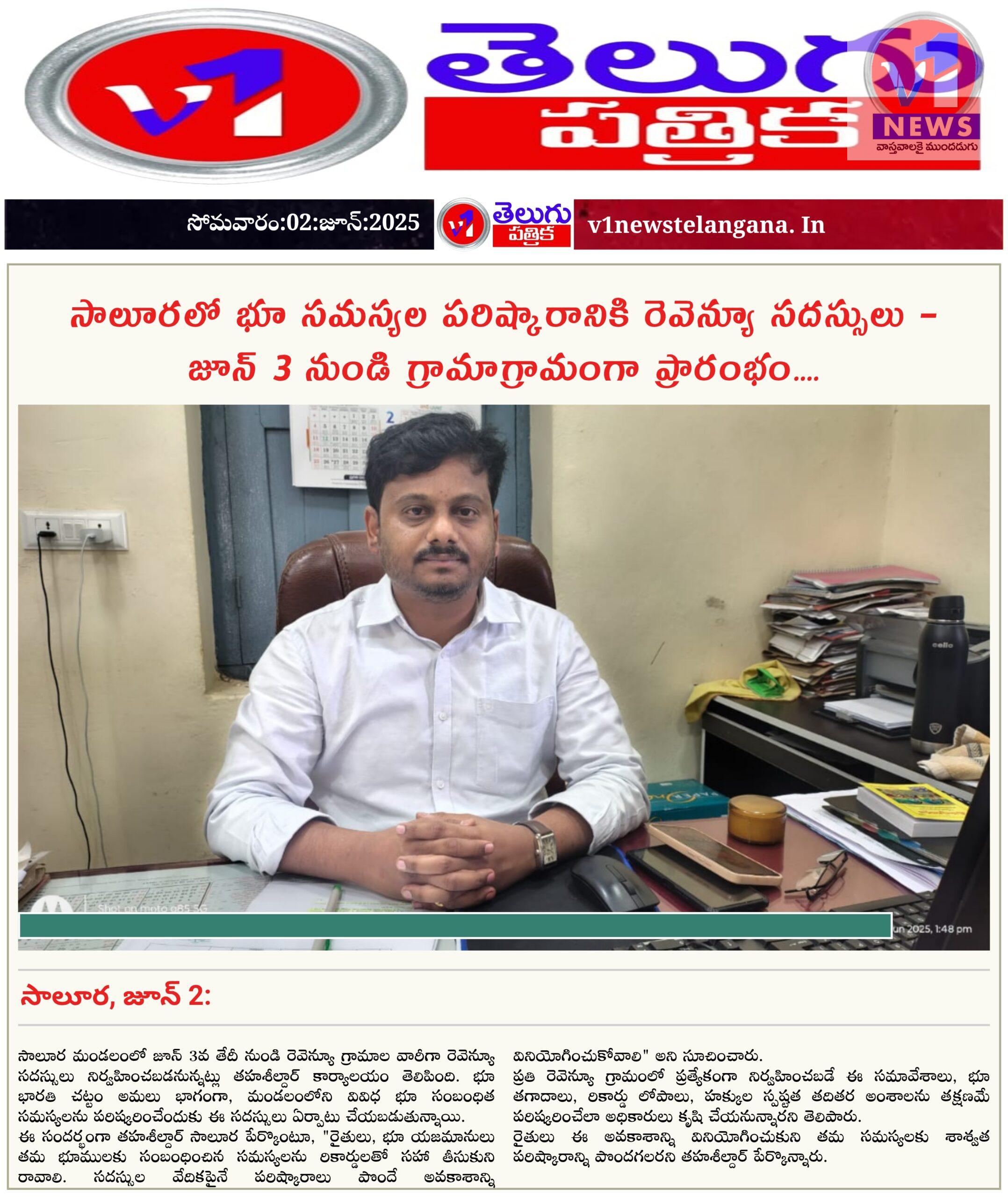 సాలూరలో భూ సమస్యల పరిష్కారానికి రెవెన్యూ సదస్సులు – జూన్ 3 నుండి గ్రామాగ్రామంగా ప్రారంభం…. June 2, 2025 No Comments