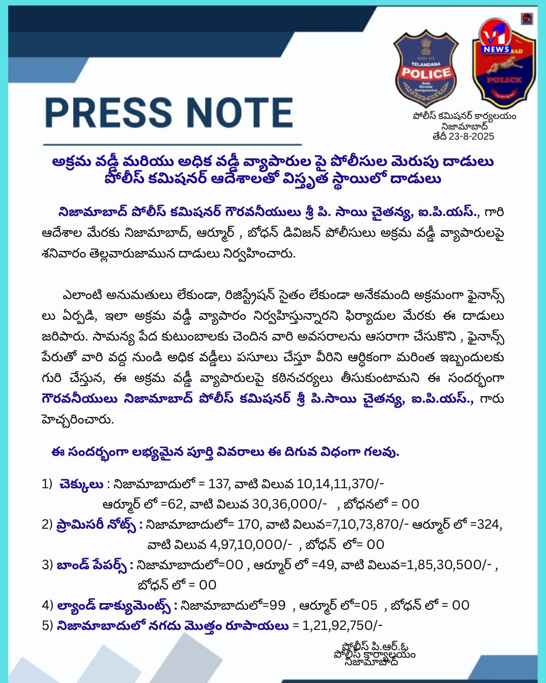 నిజామాబాద్ పోలీస్ కమిషనర్ కార్యాలయంలో 13 నిందితులు బైండ్ ఓవర్.. . DJ ఆపరేటర్లు, యజమానులు, ట్రబుల్ మాంగర్స్: సత్ప్రవర్తన కోసం బైండ్ ఓవర్… August 23, 2025 No Comments