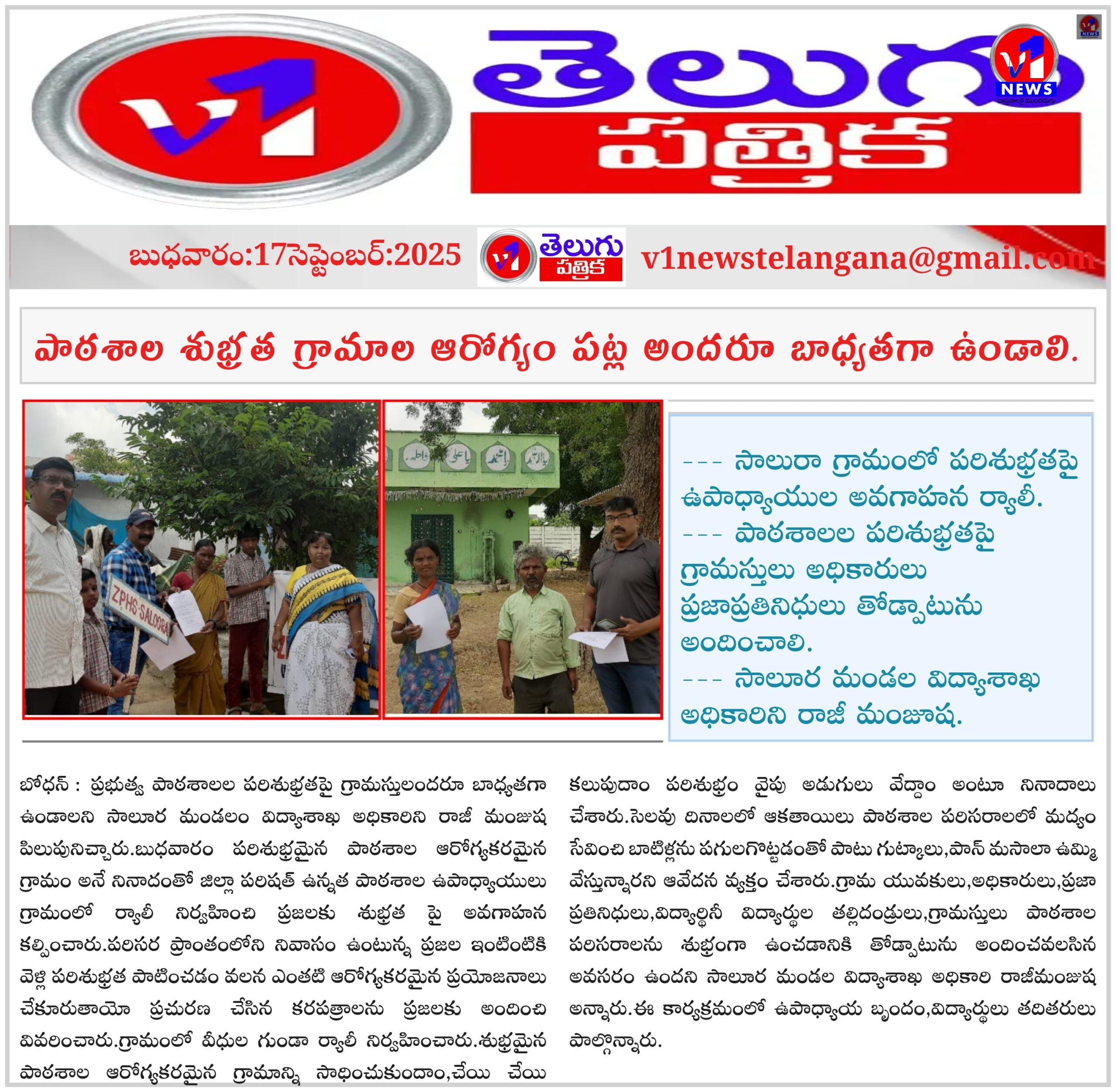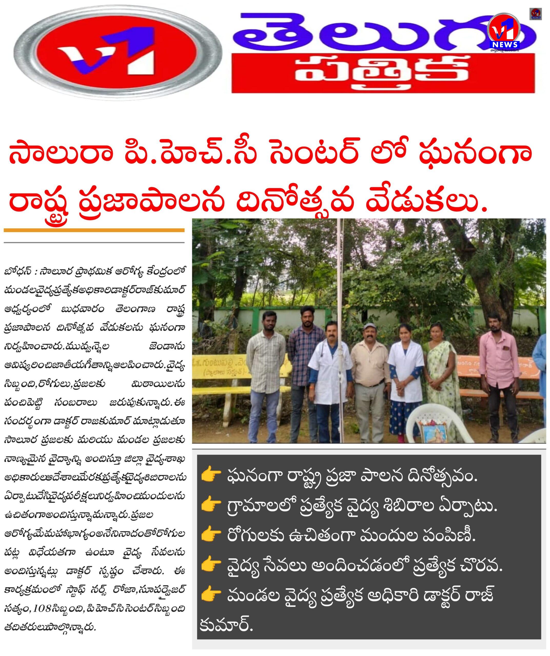 బోధన్లో తెలంగాణ ప్రజాపాలన దినోత్సవం ఘనంగా ప్రతి పౌరుడి పాత్ర ప్రజాస్వామ్య పరిరక్షణలో కీలకం — అధికారులు September 17, 2025 No Comments